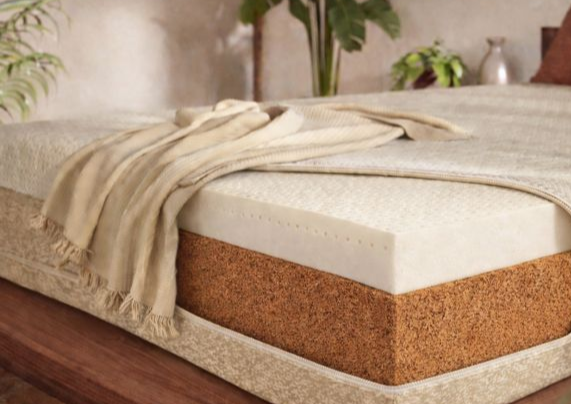A 4 inch thick layer of firm, supportive natural latex over 4/6 inches of latex-infused coconut fibre for extra structure. Encased in breathable 100% cotton.